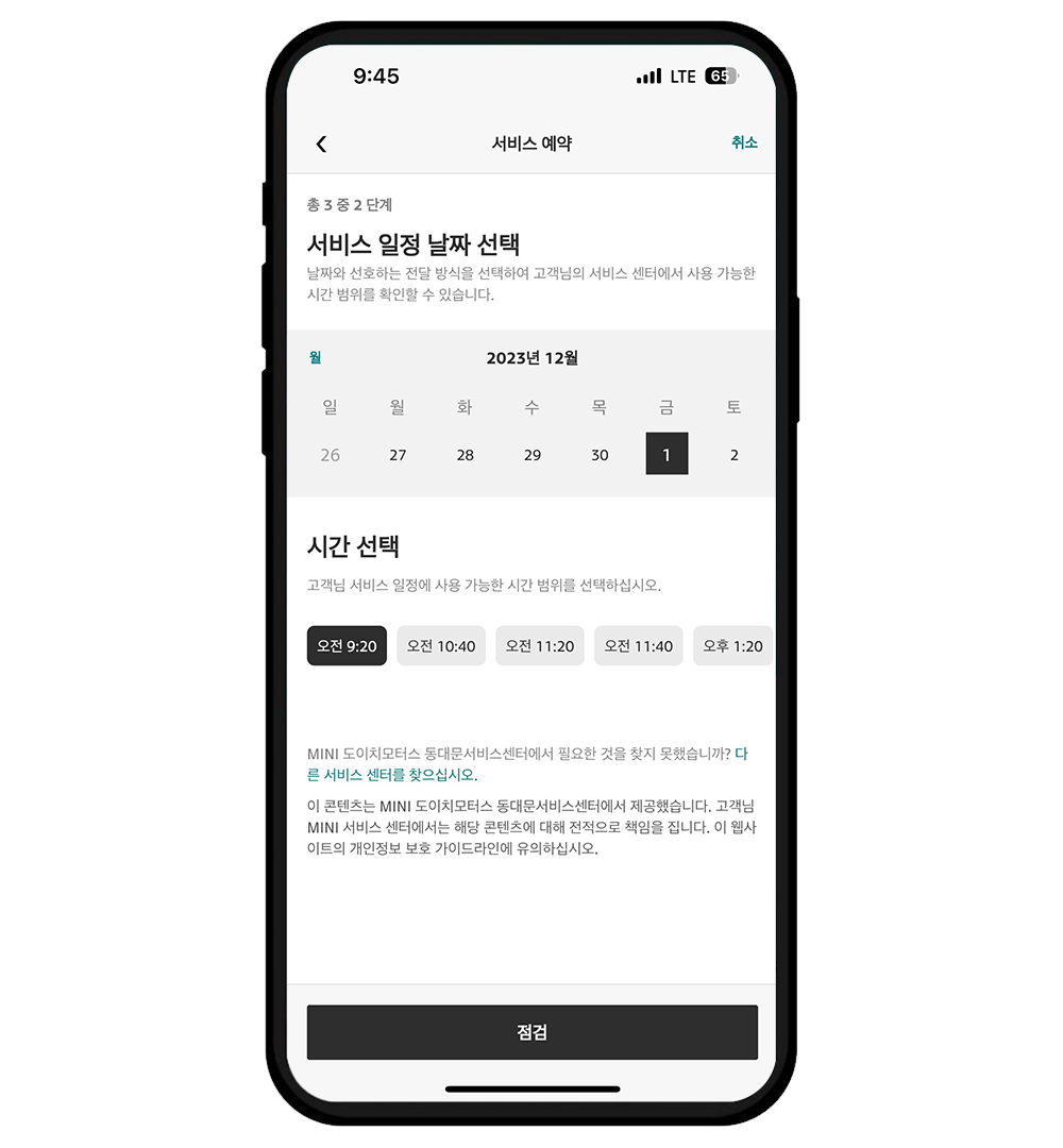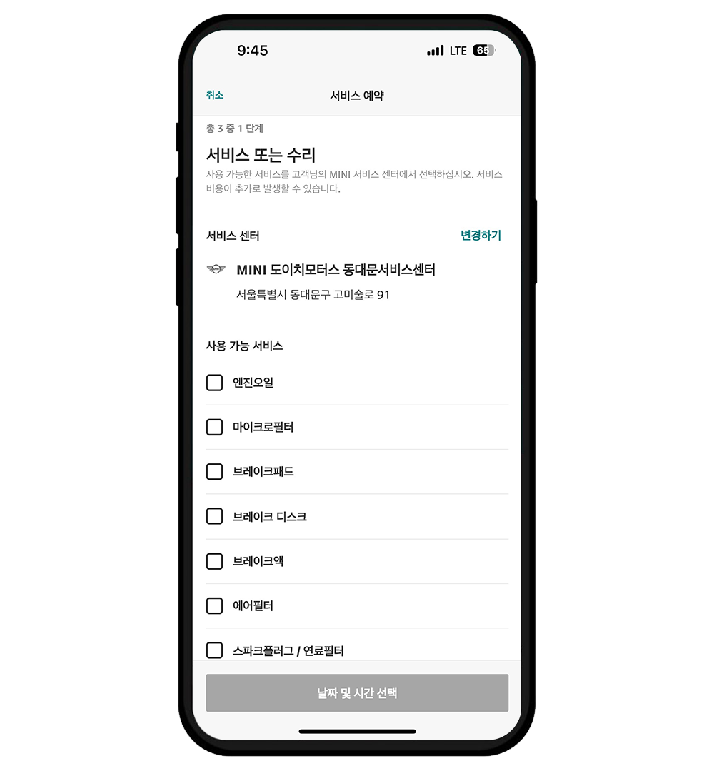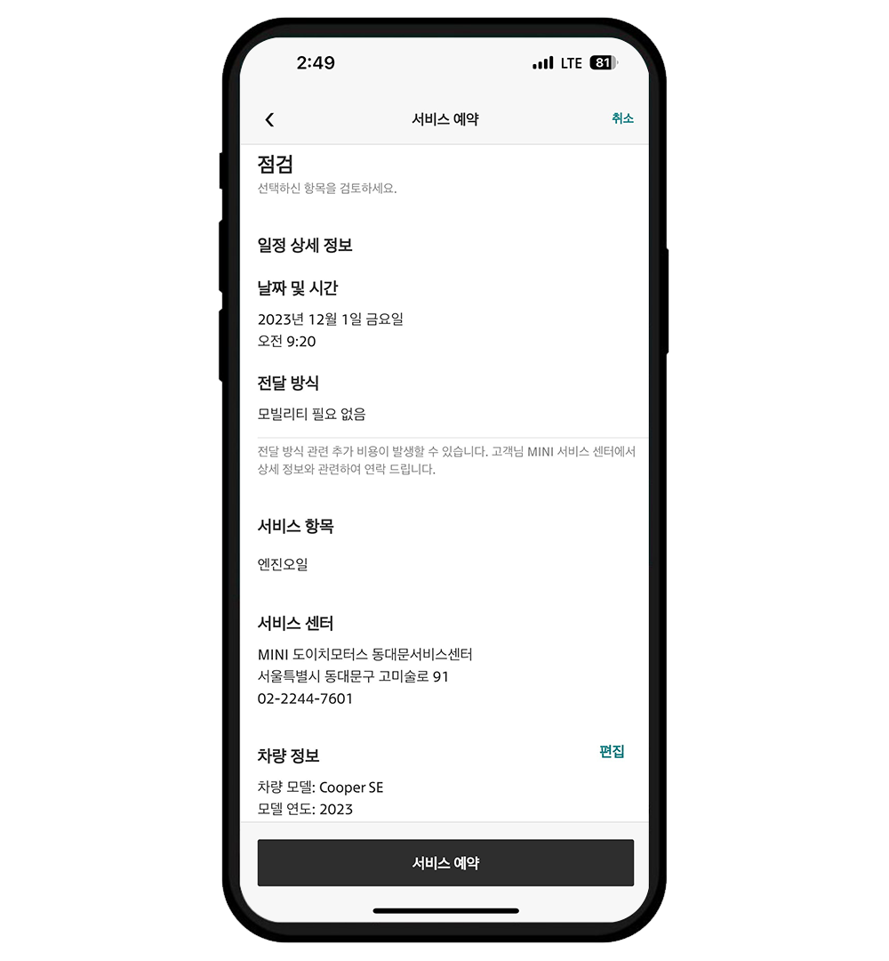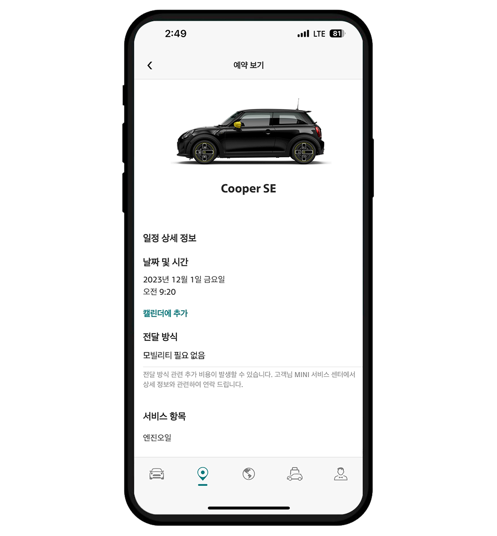 MINI 앱에서 편리하게 원하는 서비스를 예약할 수 있습니다.
