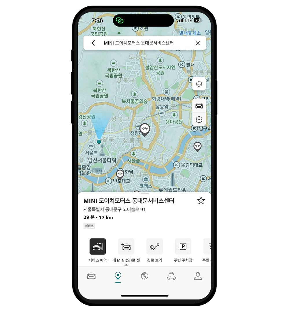 원활한 앱 사용을 위해서는 차량 내 Remote Services 가 장착되어 있어야 하며 MINI 앱 사용 및 기능은 국가에 따라 상이할 수 있습니다.