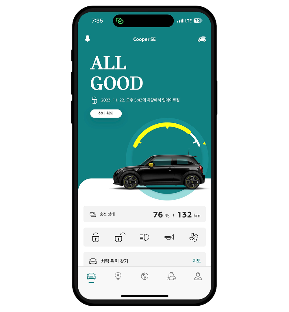 MINI앱은 MINI와의 연결을 통해 편리하게 차량을 제어할 수 있습니다.