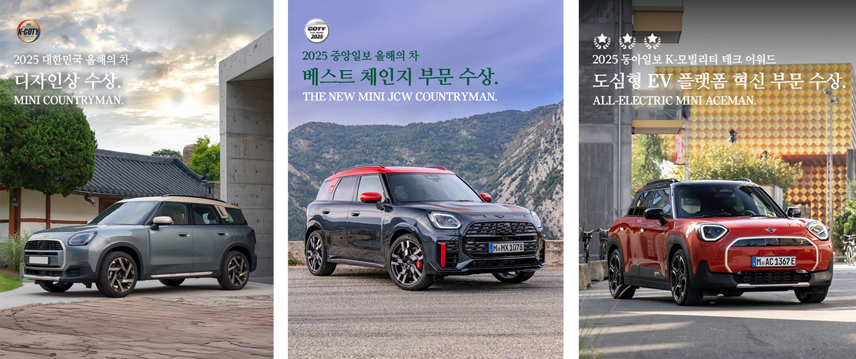 ‘THE MINI JCW COUNTRYMAN’은 중앙일보 ‘2025 올해의 차 - 베스트 체인지’ 부문을 수상했습니다.