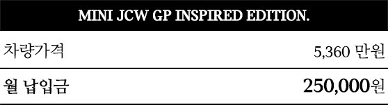 MINI JCW GP INSPIRED EDITION 특별 구매 혜택.