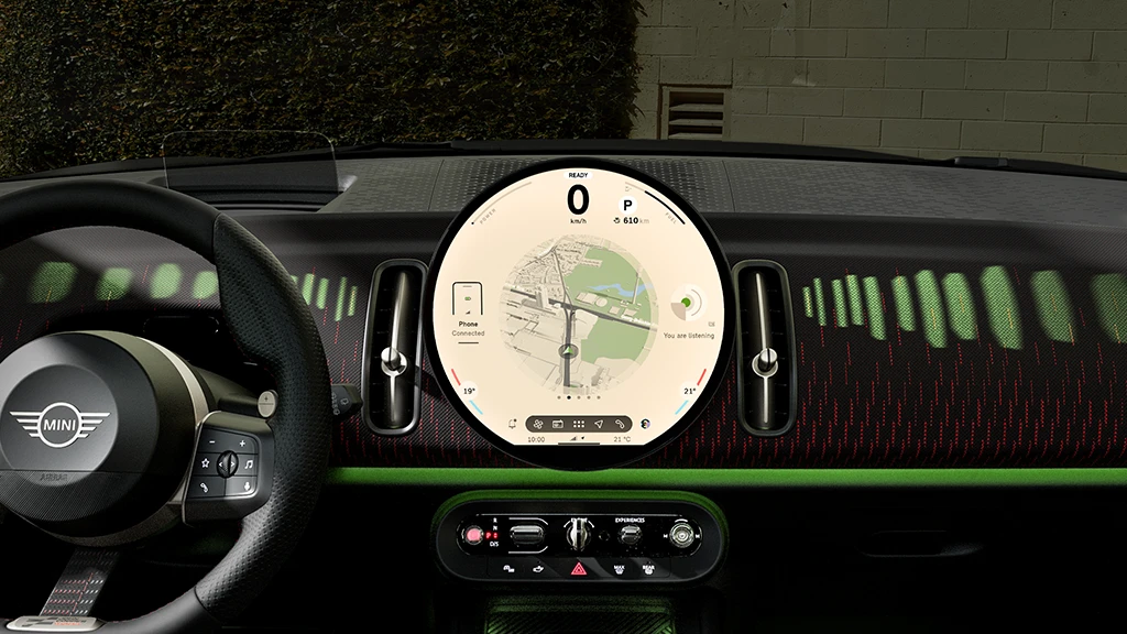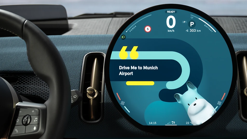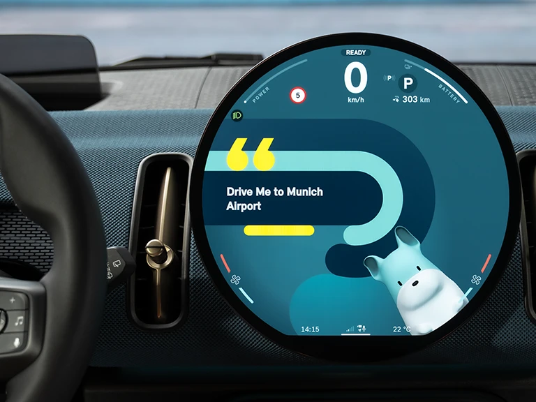 MINI 모델 최초로 고성능 음성 지원 기능이 운전석에 탑재되었습니다. MINI 지능형 개인 어시스턴트는 "안녕 MINI"라는 인사말이나 스티어링 휠 버튼으로 간단하게 활성화할 수 있습니다. 음성 제어 상호작용은 그래픽 요소와 타이포그래피, 그리고 아바타의 애니메이션 형태로 OLED 원형 디스플레이에 표현됩니다. 운전자는 스타일 디스플레이에서 2가지 옵션 (MINI를 캐릭터화한 "MINI"나 새로운 디지털 어시스턴트인 "스파이크(SPIKE)“) 중 하나를 선택해 적용할 수 있습니다.