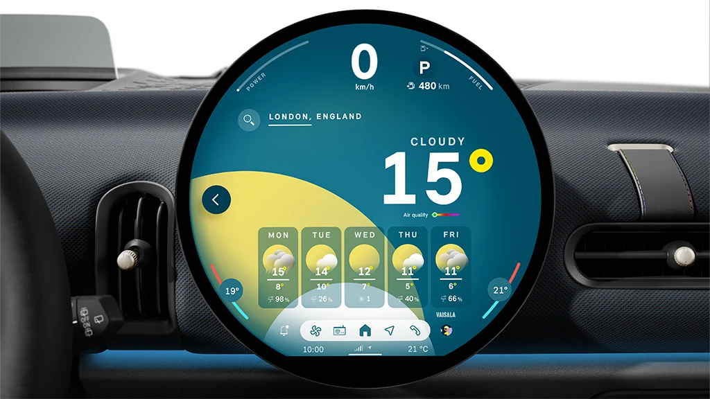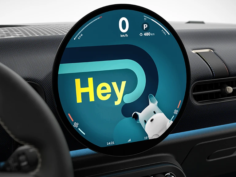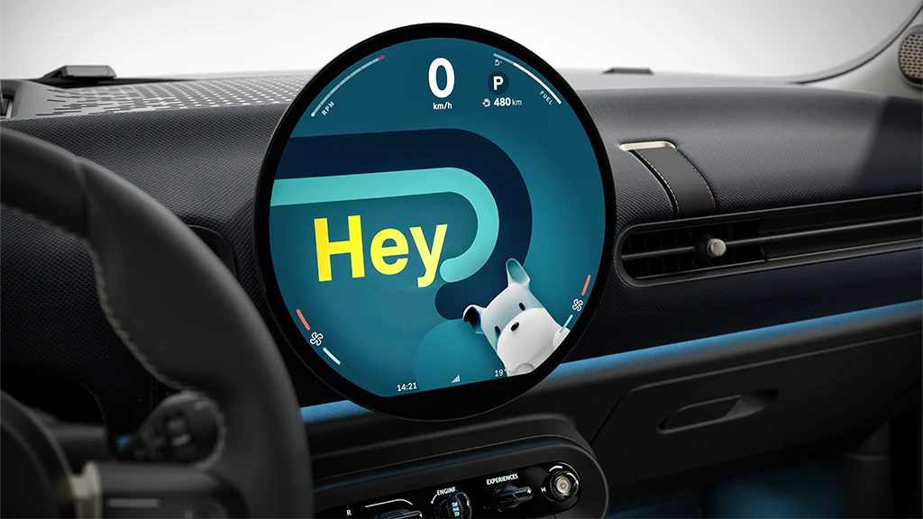 세계 최초의 원형 OLED 디스플레이를 만나보세요! 고품질 유리가 적용된 아이코닉한 240mm 중앙 디스플레이는 계기판, 온보드 인포테인먼트(onboard infotainment), 그리고 운전자를 지원하는 허브 역할까지 수행합니다.