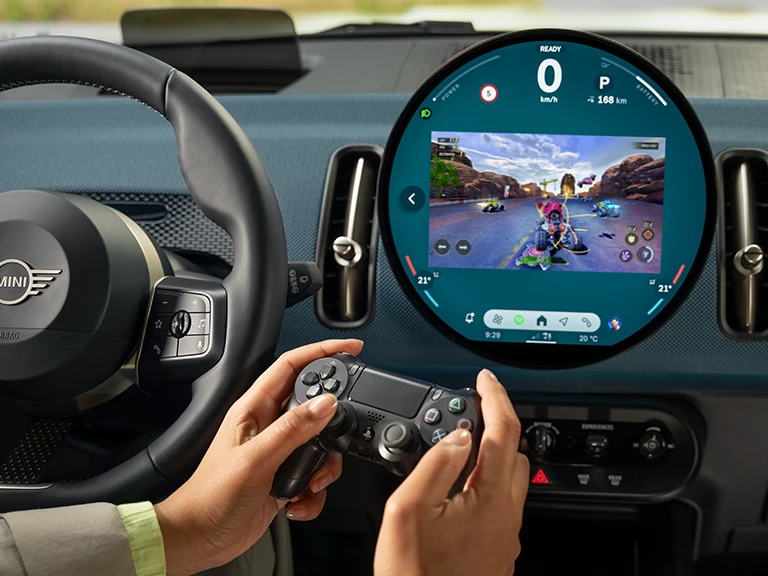 MINI 디스플레이에 탑재된 게이밍 콘솔인 에어콘솔(AirConsole) 덕분에 정차 중에도 즐거움이 계속됩니다. 50여 개의 서드파티 앱과 게임을 통해 차량을 충전하는 시간조차도 지루하지 않습니다.